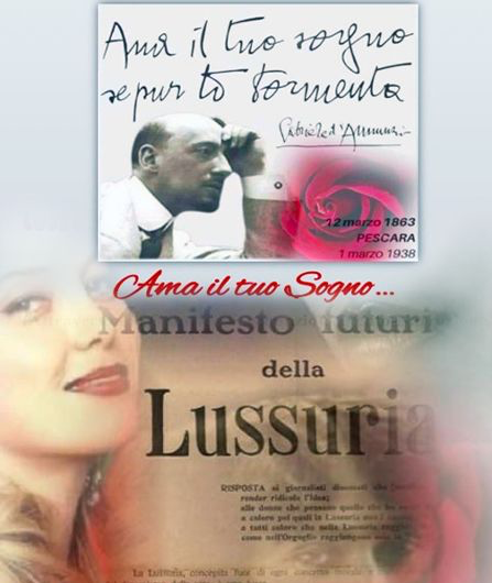 Gabriele D’Annunzio e il Futurismo sono “riferimenti”, culturali e interiori, per chi vuole fare della propria vita un’opera d’arte. Come quella del Sogno e Desiderio: “Ama il tuo sogno se pur ti tormenta!” (G. D’Annunzio). Questi “riferimenti” si sono incontrati nelle atmosfere della ‘Festa-Rivoluzione’ di Fiume. L’azione è bella quando è palpitante: “nichilistica aspirazione, in fondo, di finirla in bellezza questa inutile stupida vita” (N. Valeri). La Bellezza seducente dell’Arte-Vita può sconfiggere la monotonia del vivere con le vibrazioni di una “vita impavidamente osata vissuta goduta” (F.T. Marinetti). Questa può divenire anche una mistica: “Io ho quel che ho donato” (D’Annunzio); “I futuristi sono i mistici dell’azione” (Marinetti).