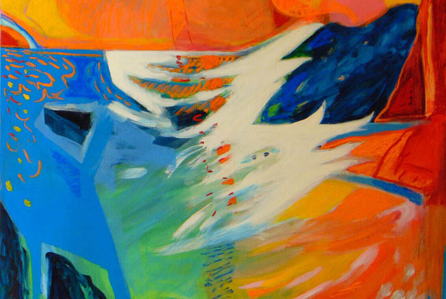 Lasciamo dunque il nostro sguardo scorrere sulle forme, indugiare su tratti e pennellate, annegare negli sfondi dei colori puri di tramonti o cieli assolati.