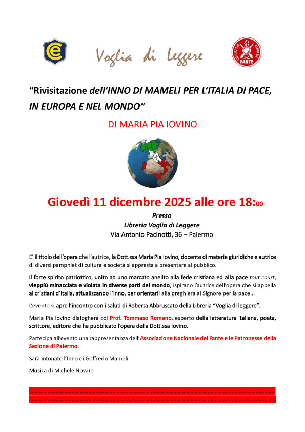 “Viaggiamo come naufraghi, dispersi nel mare immenso dell’indifferenza” recita così, una delle poesie di Maria Cristina Pensovecchio nel suo ultimo libro: “Un Lembo di Speranza” presentato a Palermo nella sede di Palazzo Ziino.