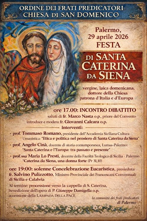 Convegno sulla figura di Santa Caterina da Siena. Il 29 aprile 2026 a Palermo