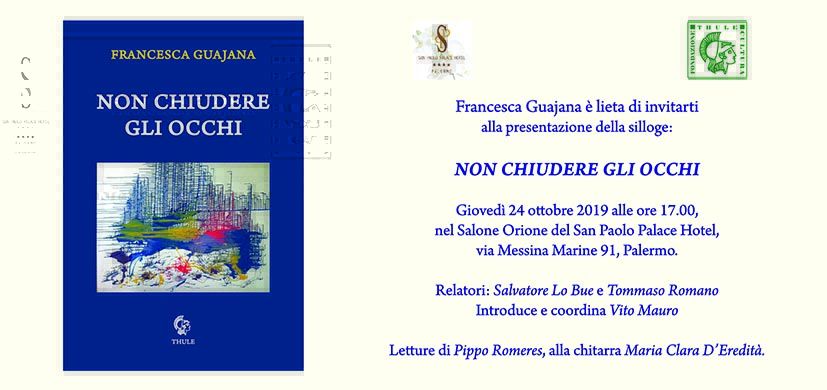 Presentazione del nuovo libro di poesie di Francesca Guajana "Non chiudere gli occhi" (Ed. Thule), Giovedì 24 ottobre 2019