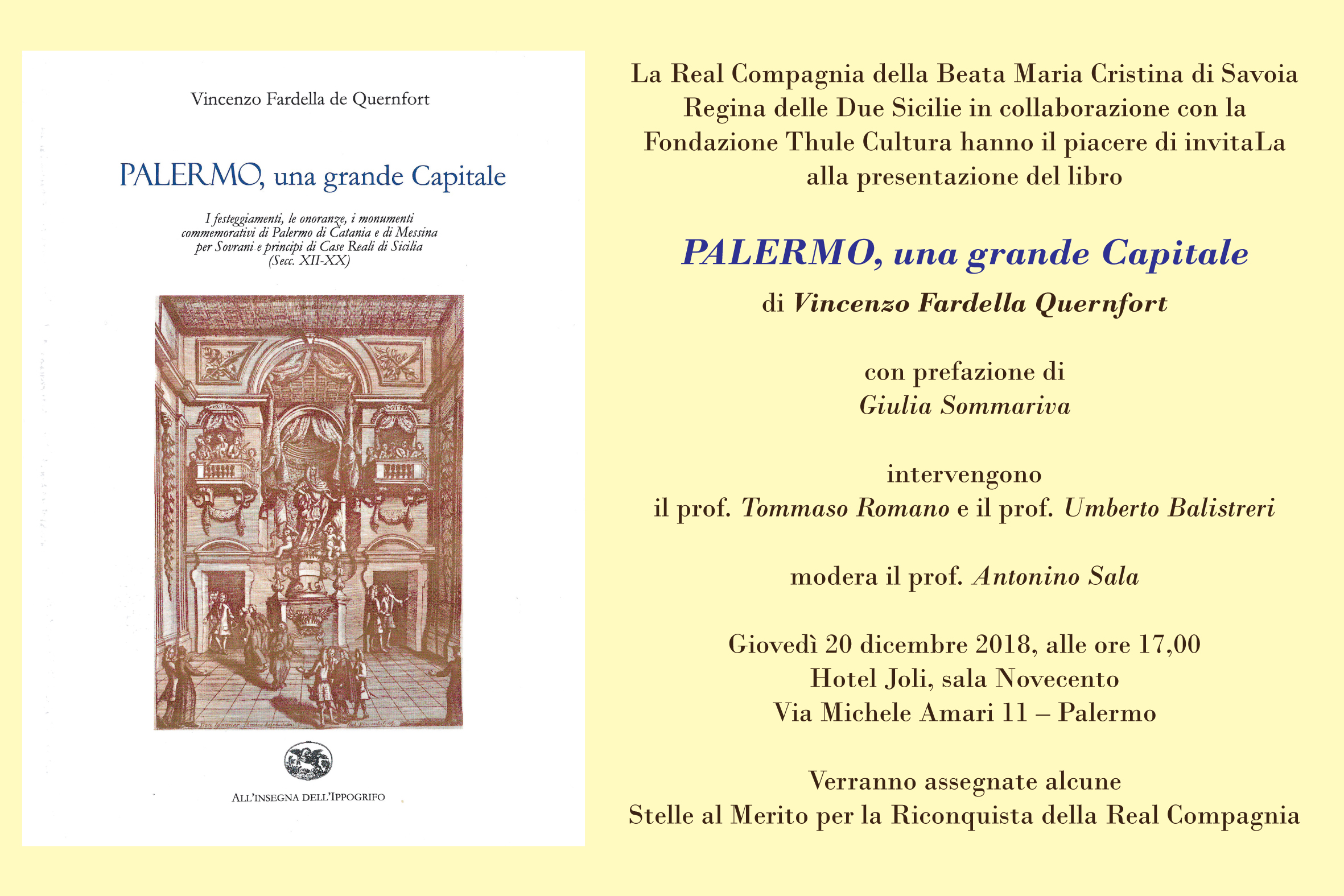 Presentazione del libro "PALERMO, una grande Capitale" di Vincenzo Fardella Quernfort, giovedì 20 dicembre 2018
