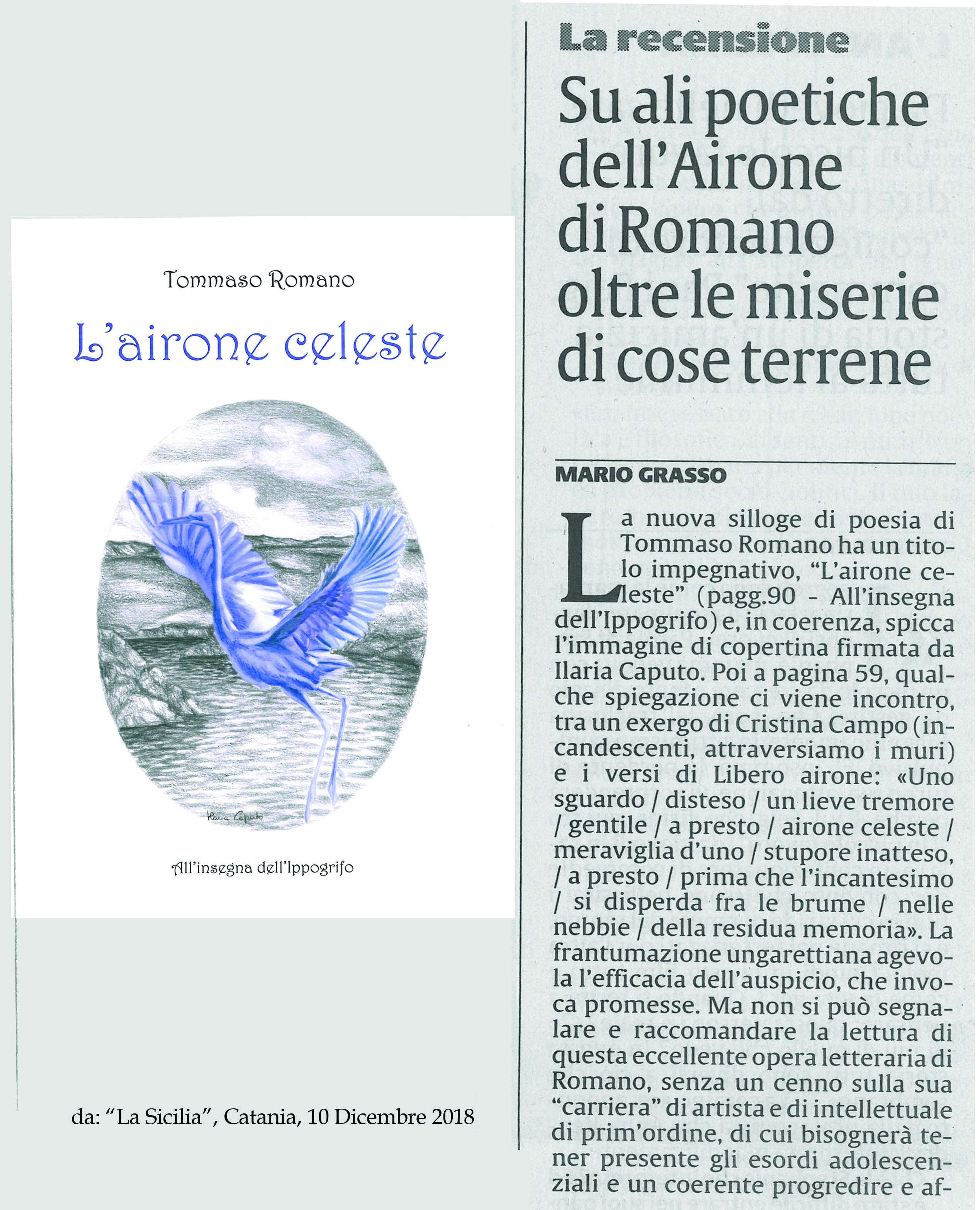 Mario Grasso recensisce "L'airone celeste" di Tommaso Romano su "La Sicilia"