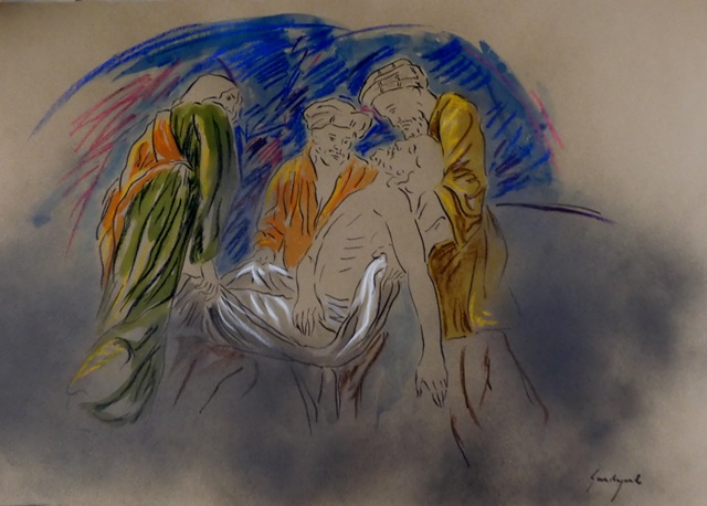 Francesco Guadagnuolo testimonia con un suo eccezionale lavoro grafico-pittorico questo evento, sul “Giovedì Santo” a Caltanissetta e scrive così: «Ho deciso di realizzare una serie di opere ispirate alla Processione del Giovedì Santo. Seguendo tutti i riti della settimana, ho cercato di far vedere le parti meno in evidenza, ritraendo oltre i gruppi o particolari di essi, i siciliani con le loro gesta, i volti scavati, le anziane signore che venivano a toccare i gruppi in segno di fede ed emozione. É una rievocazione accorata al seguito, cui si commuove tutta la città. La fede in questa circostanza è di straordinaria compartecipazione, unita di tristezza e pietà, questa fede non vissuta in maniera intimistica, ma è avvertita come forma collettiva, i nisseni si fanno trascinare in questo rito popolare in cui la gente diviene protagonista, quasi attore, in questo grande palcoscenico liturgico».